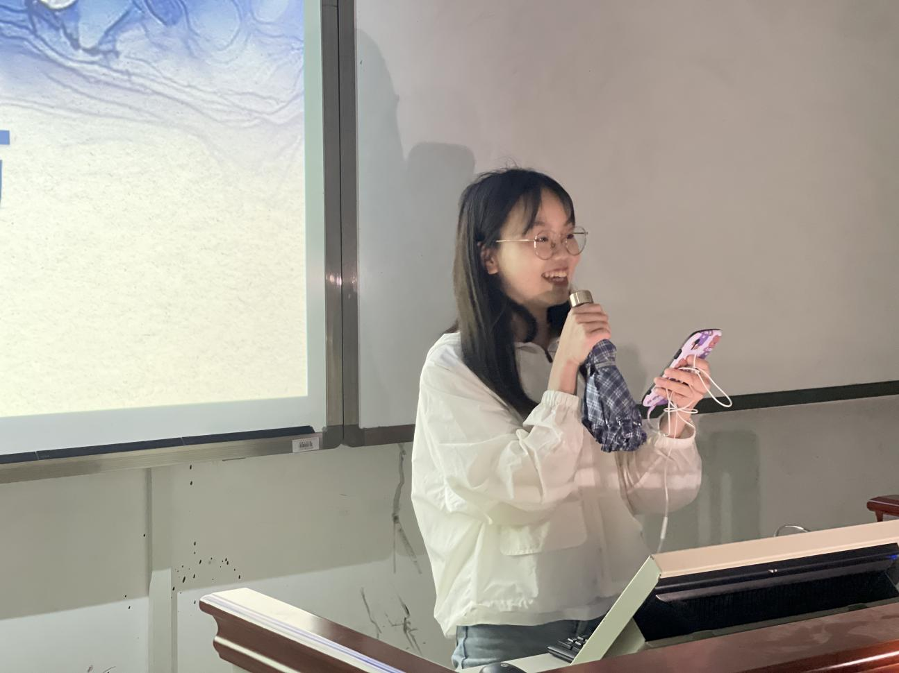 最后,团员孙霜进行了以“我心中的祖国”为主题的诗歌朗诵活动。全体团员为建党以来的惊人发展而自豪,面对祖国日益强大,作为华夏儿女,定当不忘初心,砥砺前行。