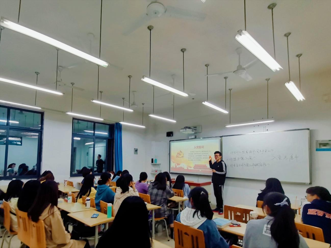 紧接着,王卓清从“申请入党”、“入党积极分子的确定和培养教育”、“发展对象的确定和考察”、“预备党员的接收”、“预备党员的教育考察和转正”五个方面向大家介绍了入党流程。同时,他带领同学们观看了《你,为什么要入党》短视频,并认真领学了入党誓词。