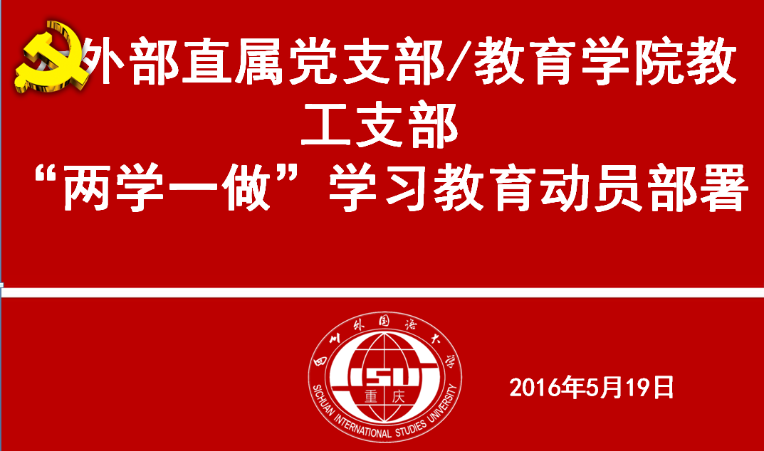 2016519日教育学院全体教工党员和大外部直属党支部全体教工党员在办公楼B404组织举行两学一做动员部署大会。