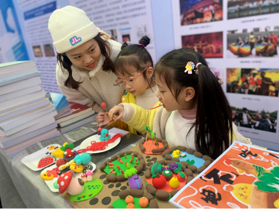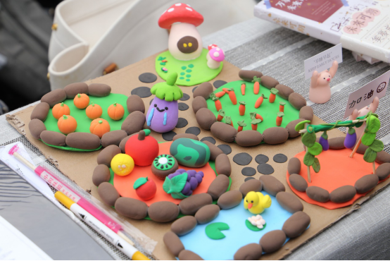 此外,特色展区中提供了许多超轻粘土供大家自由创作,也有老师同学在现场进行演示教学。现场老师、同学和小朋友们都踊跃参与,亲自动手制作。大家在图片和样品的基础上,发挥创造力,制作了许多精美有趣的作品。其中不仅有用超轻粘土制作的十二生肖、瓷器、熊猫等中国元素作品及其他国家的代表元素作品,还有中国粽子,西方下午茶,日本寿司等不同地域的美食特色作品。最后参与的同学们通过创作的作品收集了印鉴,并用所获得的印鉴兑换了限量礼品。