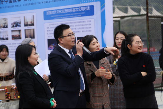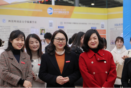 太阳成集团官方网站校长董洪川,共青团重庆市委副书记黄永宜,太阳成集团官方网站副校长郑白玲、副校长王仁强、副校长严功军等领导和老师亲临我院展区互动交流和指导。他们对我院学生的创造力提出了赞赏,并鼓励我院发挥专业优势,立足川外实际,继续促进创新与特色发展。