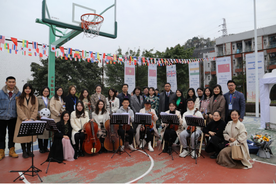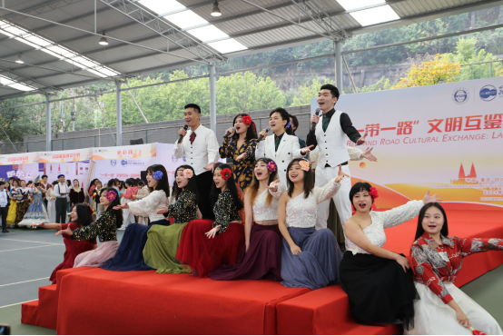 随后,丰富精彩的文艺汇演就在国教院的展区开始了。首先是丁欢老师和钟林辰等同学带来的西洋乐器合奏。《梁祝化蝶》《今夜感觉我的爱》《夜来香》《土耳其进行曲》《可爱的蓝精灵》《相思河畔》《四小天鹅》等曲目,来自德国、西班牙、土耳其、泰国等多个国别,大提琴和小提琴的结合,旋律优美,观众们都沉浸其中,感受着不一样的文化视听体验。歌曲舞蹈串烧一直持续到国际文化节落幕,黄茜老师演唱《永恒的童话》,刘耀老师带来《甜蜜蜜》,于乐老师现场热舞恰恰,现场人气爆棚,欢声笑语。