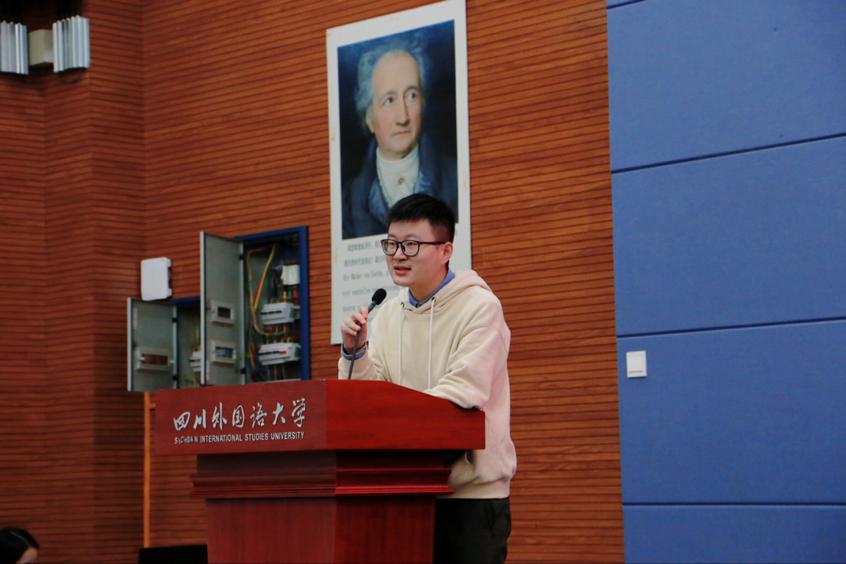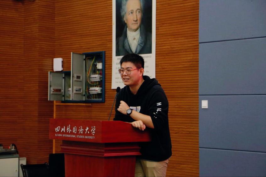 之后,龚腾飞校友提到了一个崭新的话题,他借在国外教授中文的经验,强调了中国文化自信的重要性。在接下来的提问环节中,他也谈到,在考研的道路上,大家应抓住川外丰富的资源与外语优势,学习老师多样的教学方式,并了解各校的人才培养计划,以增加考研的胜算。