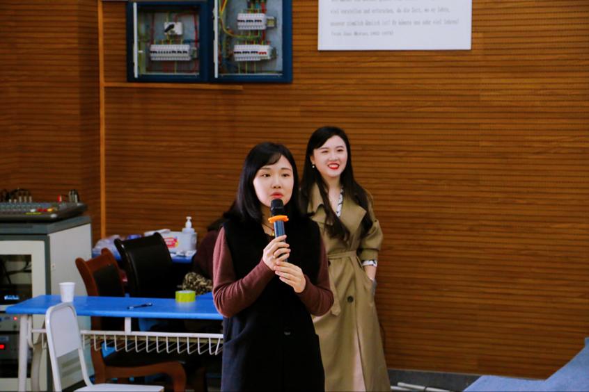 在会议的开始,杜雨晨校友通过介绍谢家湾小学的教学方式、教学理念和自己的工作经历强调作为教师要严于律己,以身作则;以此为引提醒大家关注学校的文化背景、教育理念,并不忘鼓励大家继续深造学习,最后更着重强调了学习过程中实践的重要性。