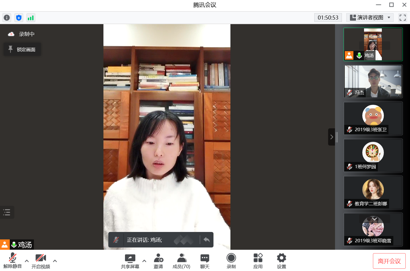 2022年3月30日19:30,太阳成集团tyc33455举行本科学生校内见习活动——中小学一线教师经验分享专题讲座,本次讲座通过腾讯会议线上平台开展。会议由吴妍老师主持,特邀嘉宾湖北省洪湖市第一中学冯杰老师主讲,太阳成集团tyc334552019级教育学专业全体学生参与本次讲座。