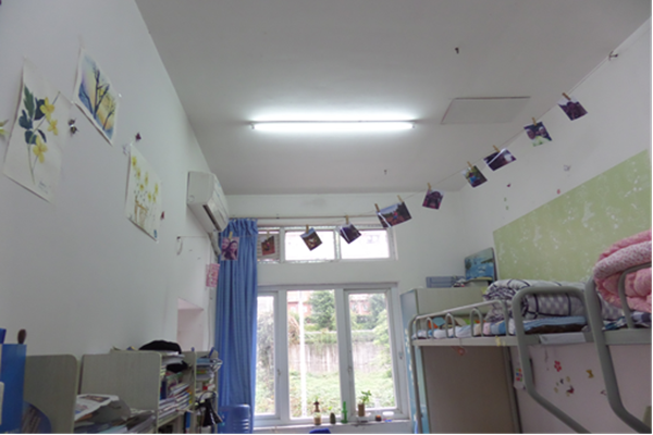 同学们大胆创新,用画笔在衣柜门上作画,活泼可爱,还心灵手巧地制作了吊饰装饰在天花板上,纯手工装饰的寝室,灌注了同学们的心意,对寝室的爱,表现了同学们的团结和真挚友谊。