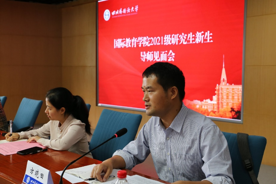 最后,龙洋院长对本次见面会进行了总结,对研究生新生的专注精神和学会倾听态度表示了肯定,他认为本次见面会代表了2021级研究生新生学术生活的正式开始,将会是大家的一个全新的起点,希望大家在川外的研究生生活开心快乐。