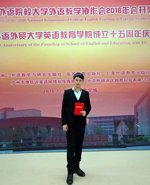 2016年12月2日—4日,第九届“全国外语院校大学外语教学协作会2016年会暨大学英语演讲比赛”在广东外语外贸大学举行。本次大赛由全国外语院校大学外语教学协作会及广东外语外贸大学主办,吸引了来自外交学院、洛阳外国语学院、北京第二外国语学院、西安外国语大学、北京语言大等全国各外语高校推选的22名选手参赛。我校选派的来自教育学院的2014级徐睿同学凭借出色的表现,以第二名的成绩荣获此次大赛二等奖!