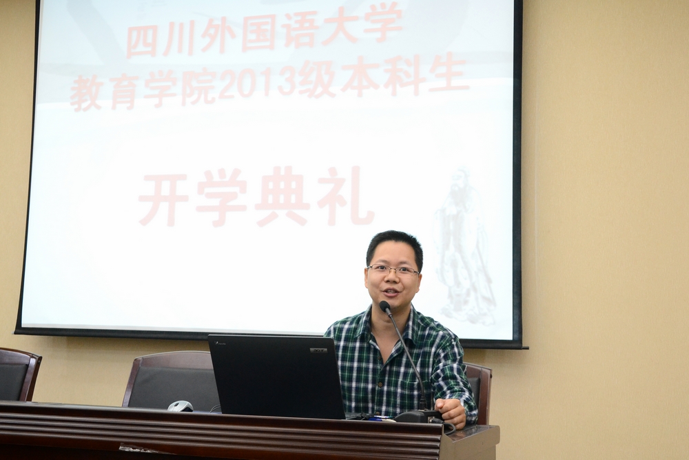 最后,龙洋老师总结发言,他从三个主要就业方向为同学们解读了作为教育学院学生,大学四年应该有怎样的规划和愿景。龙老师指出,教育学院有着极强的师资队伍,给大家讲授专业课的老师都是博士或者教授。因此,在这里,大家除了可以成为中小学英语教师、国际学校教师和继续深造考取研究生外,在教育部着力打造教育国际化后备人才培养的大背景下,成为了解国际教育规则、学贯东西的教育国际化推动者将会大有可为。希望同学们记住这次开学典礼的地点,以书为友,追求一种有境界的学习和生活。最后,国庆将至,祝大家节日快乐!学习进步!
