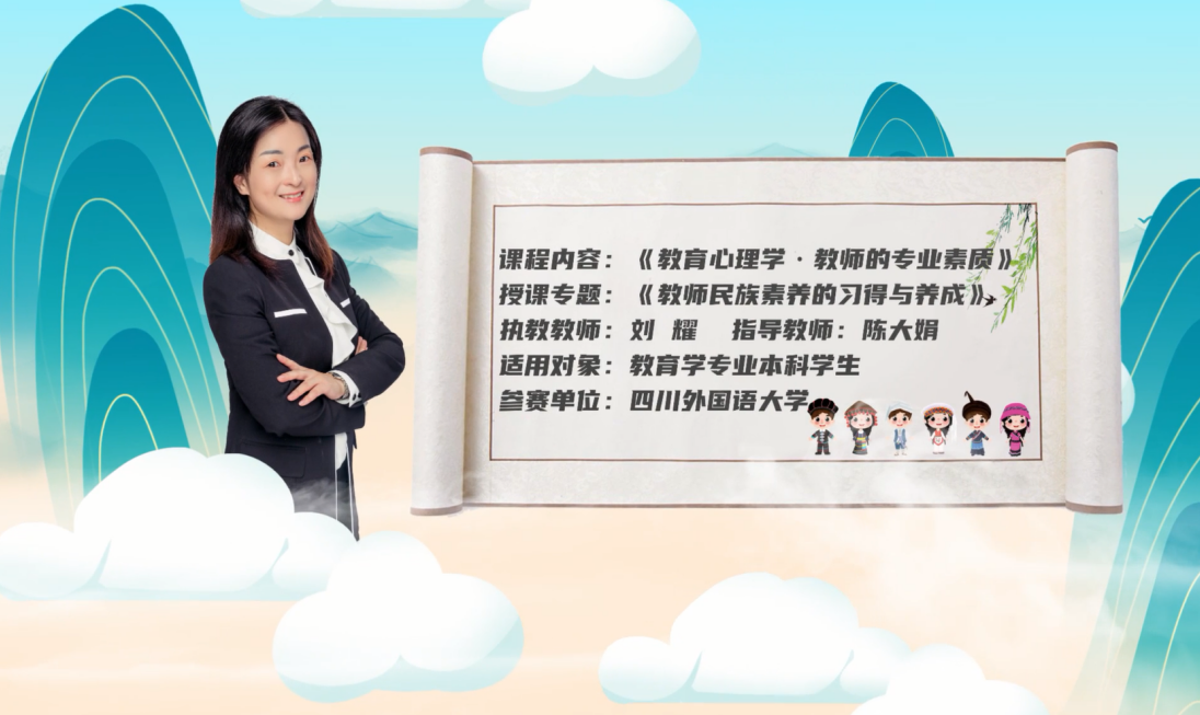 为全面贯彻中央民族工作会议精神,认真落实《教育部等四部门关于印发深化新时代学校民族团结进步教育指导纲要的通知》(教民〔20211号)要求,重庆市教育委员会于近日举办了民族团结进步教育优质课展示活动,我校教师刘耀(执教教师)和陈大娟(指导教师)荣获高校组一等奖。刘耀和陈大娟的参赛作品是为时四十分钟的教学视频《教师民族素养的习得与养成》,通过对教师民族素养概念的提出和论证,助力教师专业素质的提升,促进准教师国家认同感、民族自豪感和历史使命感的形成。