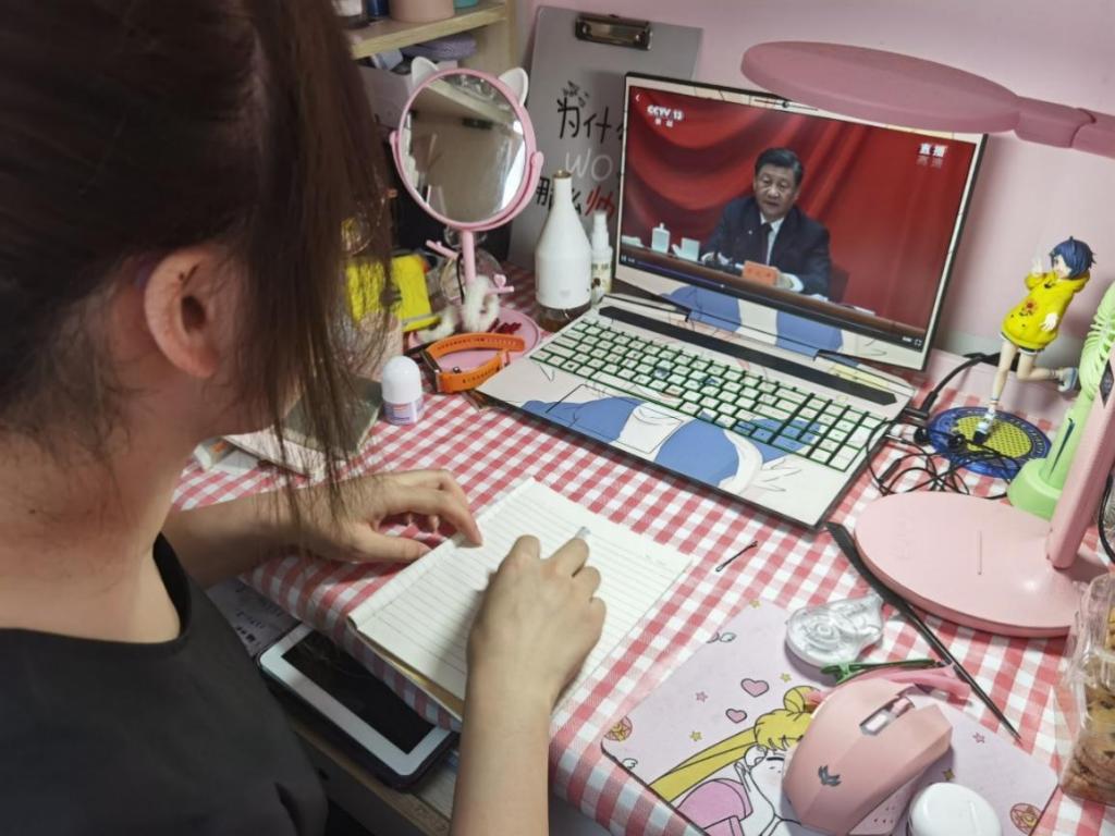 首先,在思想认识方面,同学们通过观看直播全面回顾了一百年来共青团坚定不移听党话、跟党走的光辉历程,深刻学习领悟了共青团和青年工作的宝贵历史经验。习近平总书记在大会上对做好新时代共青团工作提出明确要求,对当代青年寄予殷切期望,饱含着党中央对青年一代的亲切关怀和对共青团事业的高度重视。同学们一致认为,在新的征程上,要认真学习、深刻领会、全面贯彻习近平总书记重要讲话精神。正如习近平总书记在大会中的讲话:“千百年来,青春的力量,青春的涌动,青春的创造,始终是推动中华民族勇毅前行、屹立于世界民族之林的磅礴力量。”同学们一致表示:会坚定不移听党话、跟党走,勇立时代潮头;以强烈的上进心和进取意识,培养自身适应不断发展和变化的能力,不断完善自我,逐渐将自己培养成一个全面发展的新时代共青团员,在实现中华民族伟大复兴梦的路上,有一分热,发一分光,做出自己的贡献。通过本次学习,同学们更坚定了自己的政治立场。