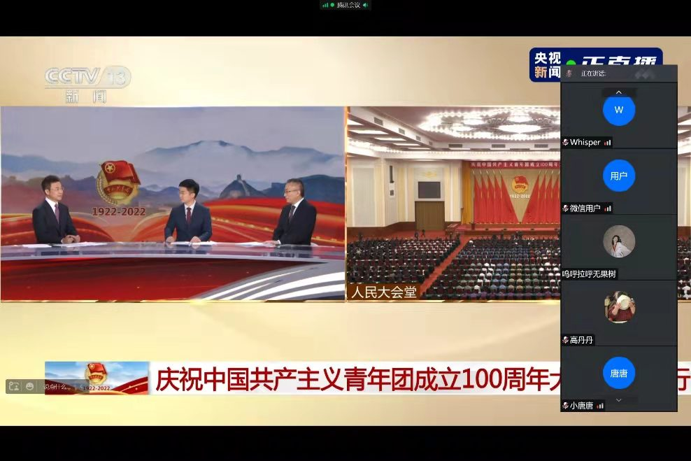 2022年5月10日,太阳成集团tyc33455,太阳成集团官方网站各团支部开展了以“勇担时代重任,不负青春使命”为主题的庆祝中国共产主义青年团成立100周年的团学活动。本次团学活动通过观看会议直播、撰写青年热议信息等方式开展,各团支部书记分别组织学习了习近平总书记在庆祝中国共产主义青年团成立100周年大会的重要讲话精神。