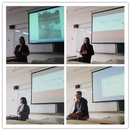此次分享会从“带薪实习”“自主实践”“文化交流”“志愿者服务”“三下乡活动”五个类别中分别选取了具有代表性的同学,讲述了自己的实践活动以及所见所感。