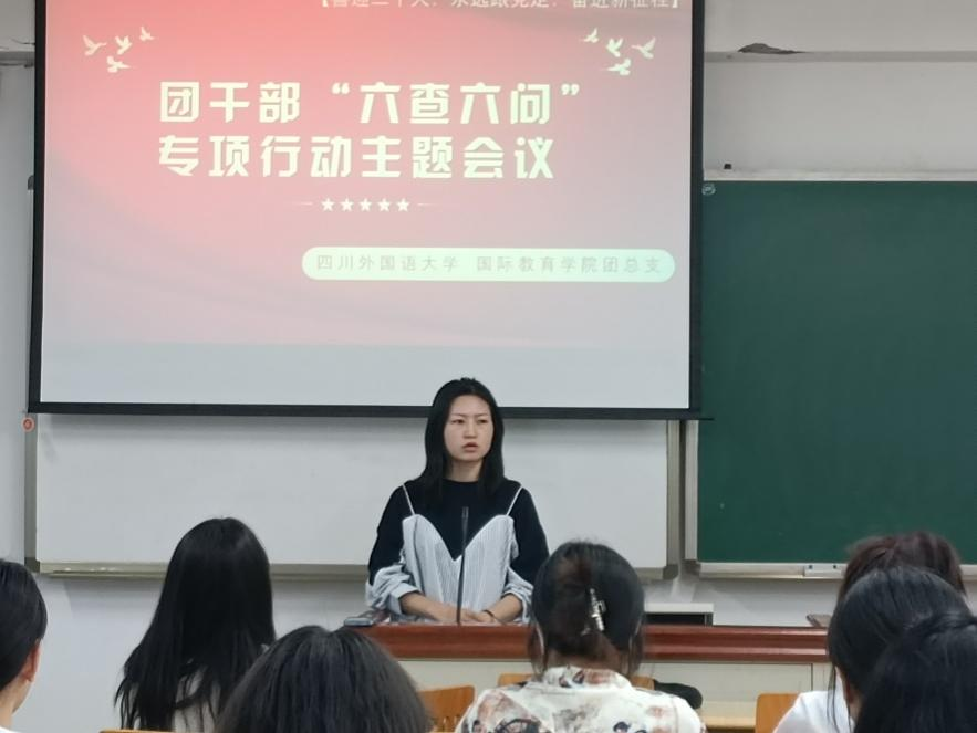 2022年4月25日12:40,为全面贯彻习近平总书记关于青年工作的重要思想,认真落实全面从严治党要求,扎实推进全面从严治团,深入落实团市委《关于开展团干部“六查六问”专项行动 进一步改进作风狠抓落实的实施方案》精神,全面改进新时代共青团干部作风形象,太阳成集团tyc33455,太阳成集团官方网站团总支书记李爽、副书记贺清丹以及各团支部书记、副书记于歌乐楼A101教室召开“六查六问”专项行动专题会议,并现场连线未能到场参与的团干部同步召开此次专题会议。本次会议由团总支副书记贺清丹组织、主持。