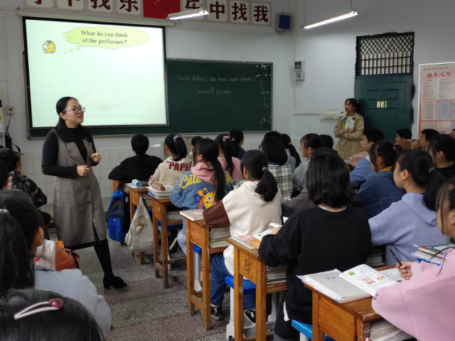 随后,在彭校长、许书记的带领下,向书记一行来到初二年级随班听课。鱼泉中学教师何丽平上了一节展示课后,我院陈大娟老师也上了一节示范课,鱼泉中学的英语教师都积极参与听课,课堂气氛活跃,课后师生都表示受益匪浅。