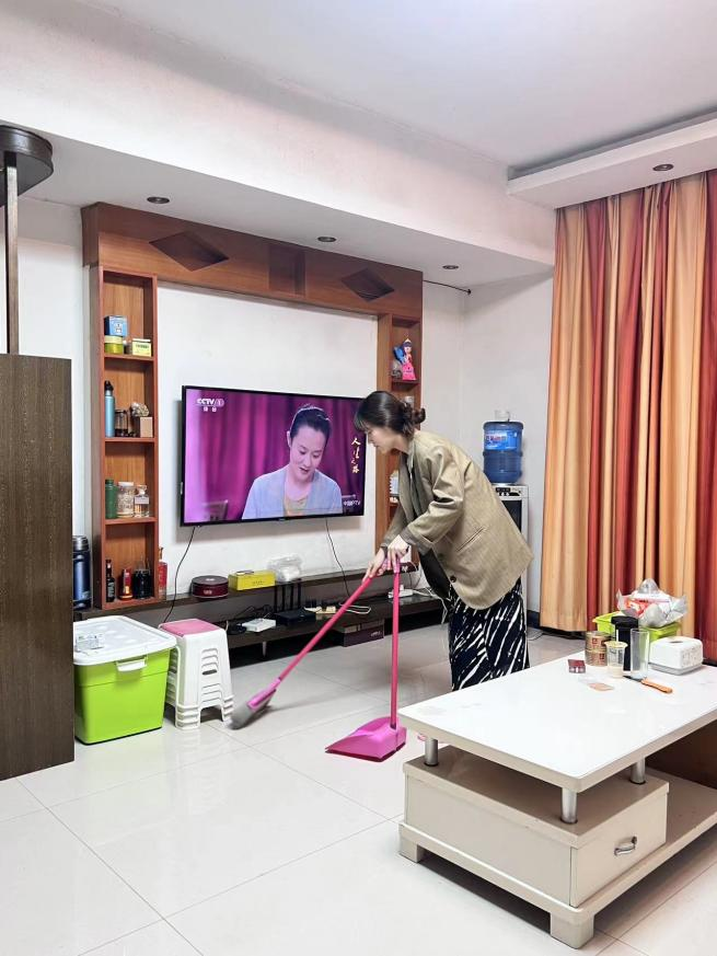 他们在家里家务劳动,扫去没用和烦恼,迎来快乐与美好。
