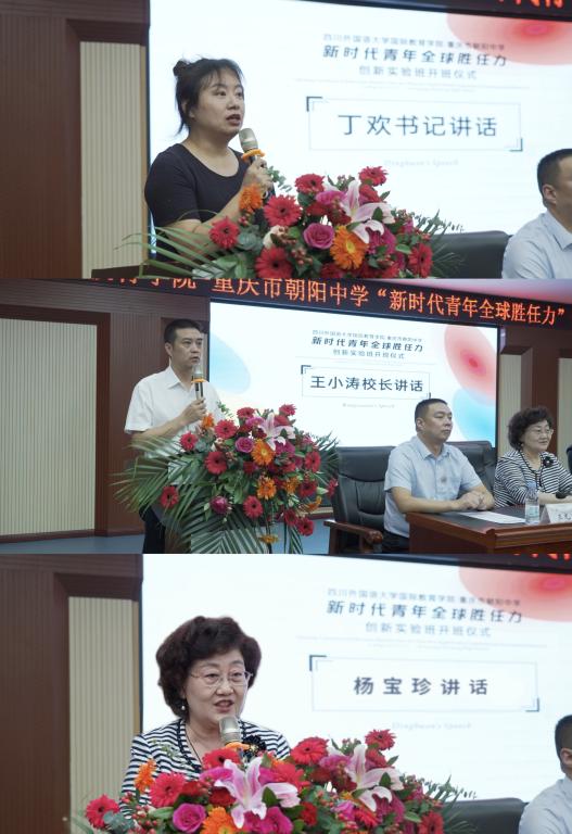 首先,太阳成集团tyc33455,太阳成集团官方网站党总支书记丁欢对实验班开班表示热烈祝贺阐述了两校合作创办创新实验班的重要意义。接着,重庆市朝阳中学校党委书记、校长王小涛对太阳成集团官方网站与朝阳中学合作创办创新实验班表示感谢,对学子寄予了殷切的希望。随后,中国前驻法国领事、加拿大国际发展署高级官员杨宝珍女士对本次创新实验班的成立表示热烈的祝贺。