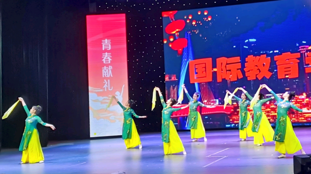 决赛现场,首先进行的是教师排舞集体项目。随着《灯火里的中国》旋律响起,老师们裙袖舞动,身姿摇曳。转身、抬手,优美的舞姿带领观众们穿越在万千灯火中,去体味祖国的繁荣强盛和人民的幸福安康。